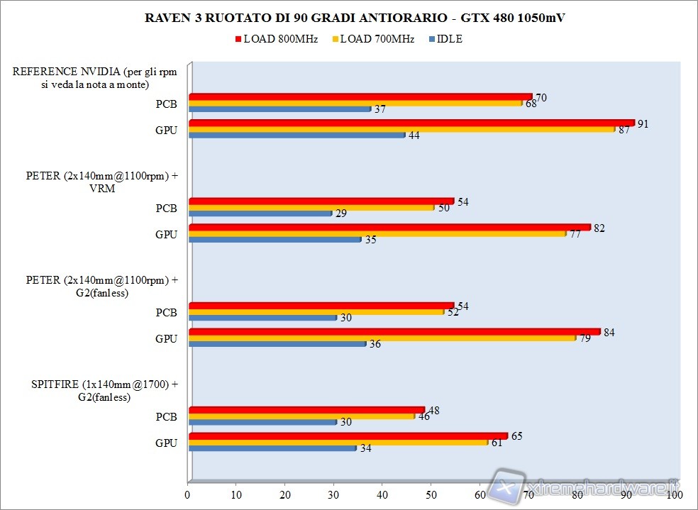 Sul Raven3 in posizione ruotata di 90 gradi FAN @def ed OC : 1700/3600 - 1700/4200RPM