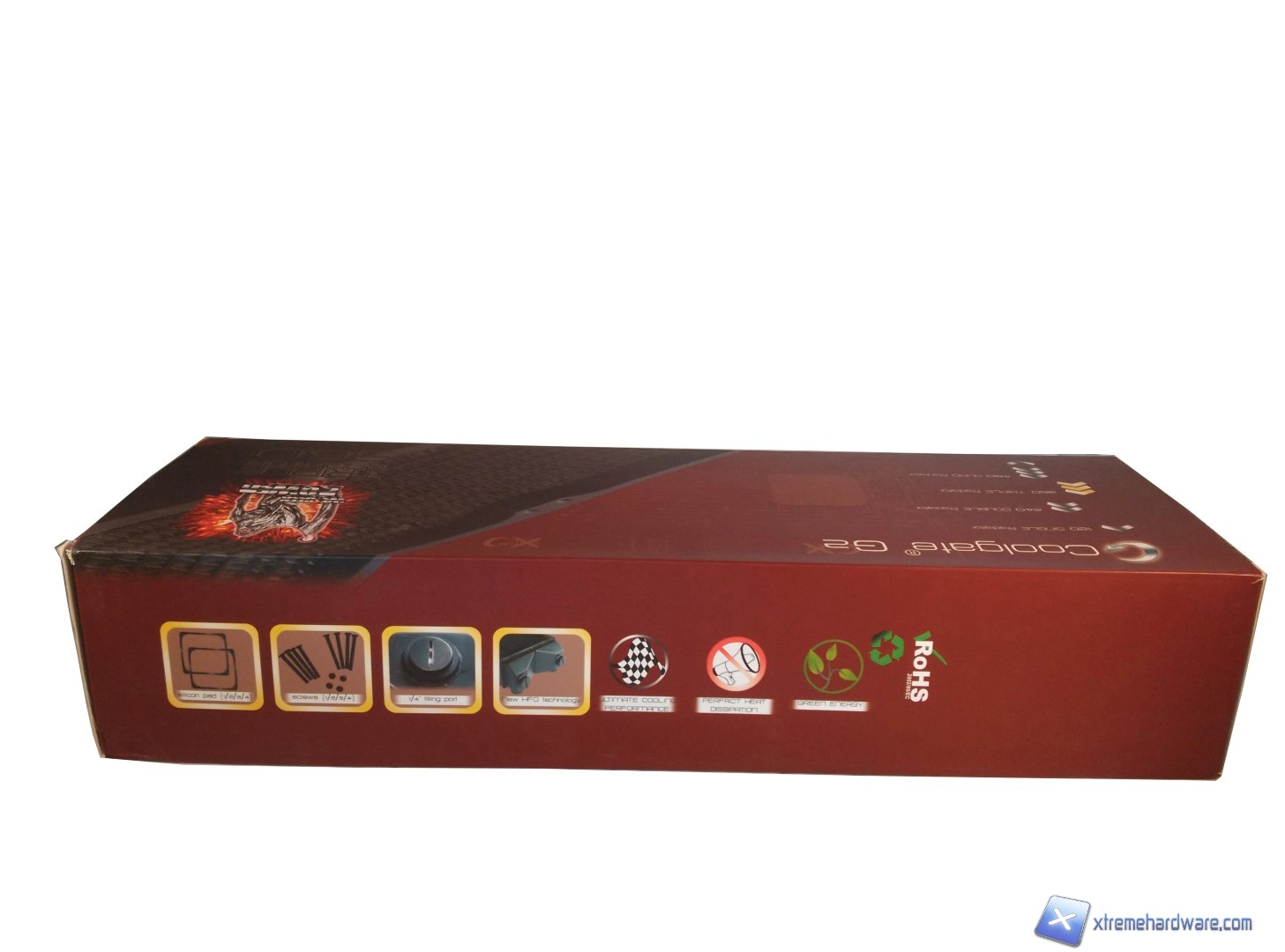 Il radiatore Coolgate G2 360 ci arriva in una bella e colorata confezione di cartone, ricca di stampe e di informazioni sul prodotto. La parte frontale ha in evidenza il nome del prodotto Coolgate G2 e sotto l’indicazione che il contenuto è il modello triventola 360. Sulla destra troviamo una foto del radiatore e in risalto un logo che rappresenta una specie di mago con la scritta “we seek… power”, a conferma del fatto che Coolgate è sempre alla ricerca delle migliori prestazioni.