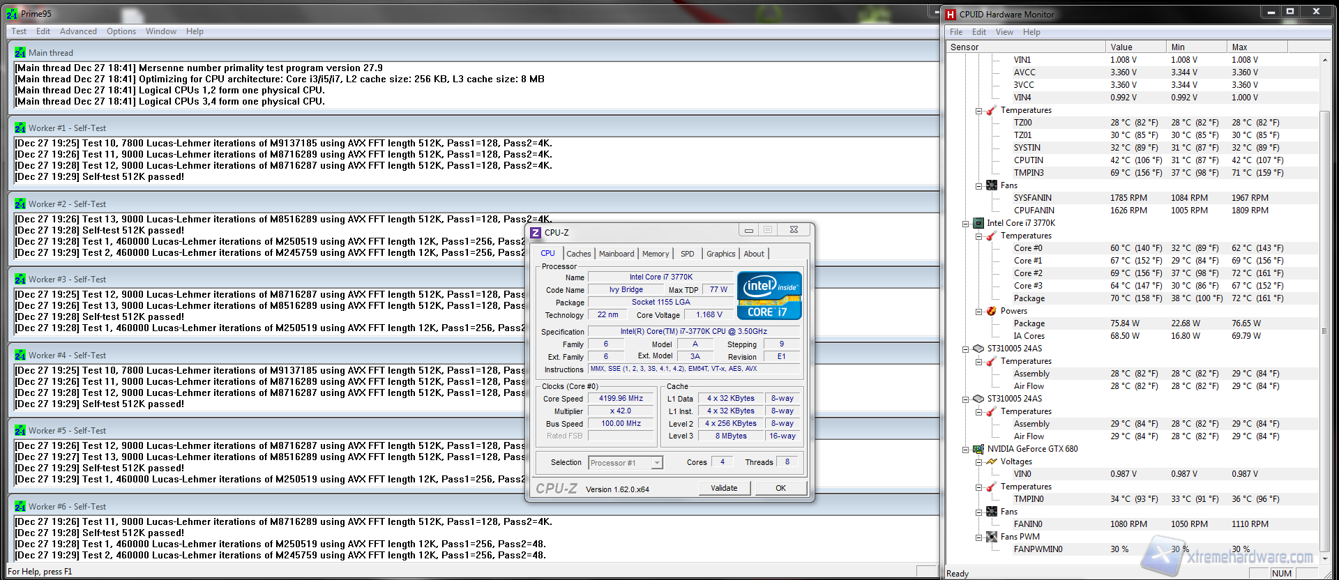 Questo effetto non è dovuto alle scarse prestazioni del dissipatore ma piuttosto all’unione tra DIE del core e la placchetta metallica sovrastante (HIS). Con la famiglia Ivy Bridge, infatti, Intel non ha saldato le due parti come faceva in precedenza sui processori Sandy Bridge (e non solo) ma le ha unite mediante una pasta termica dalle caratteristiche termo conduttive nettamente inferiori. Da osservare come ad un certo punto HW Monitor abbia rilevato regimi massimi di rotazione delle ventole in modo errato, il regime massimo osservato per quanto riguarda il dissipatore è stato di 2500rpm, probabilmente si tratta anche del limite massimo di giri che può generare la ventola.