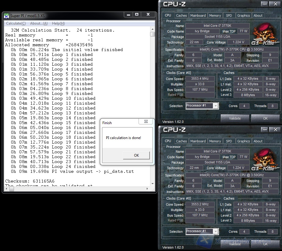 Abbiamo raggiunto una frequenza di oltre 6 GHz:  a questa frequenza il Core i7 3770k assorbe una notevole quantità di corrente arrivando a consumare ben oltre 200 Watt. Avvalendoci del tool CPU-Z ver. 1.62, in mancanza di punti di lettura per la rilevazione delle tensioni, siamo rimasti soddisfatti dall’assenza praticamente nulla di Vdroop. Purtroppo non siamo riusciti a tirare a dovere le nostre memorie, con le quali riusciamo a fare il boot su una scheda ASUS ROG ad una frequenza di oltre 2700 MHz. Da questo punto di vista possiamo forse segnalare una immaturità del BIOS