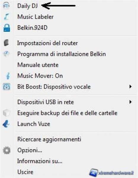 Belkin Daily DJ crea automaticamente playlist giornaliere personalizzate, utilizzando la propria collezione di musica. È come avere un DJ personale che mette in onda i propri brani preferiti. Funziona perfettamente con iTunes e Windows Media Player. Daily DJ si trova sotto l'icona Belkin Router Manager, nella barra delle applicazioni.