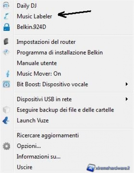 Belkin Music Labeler corregge i metadati (nomi tracce, nomi artista, numero della traccia, ecc) della musica inclusa nelle librerie iTunes o Windows Media, permettendo all'utente di individuare facilmente il file musicali. Music Labeler si trova sotto l'icona Belkin Router Manager, nella barra delle applicazioni (Windows) o nella barra dei menu (Mac).